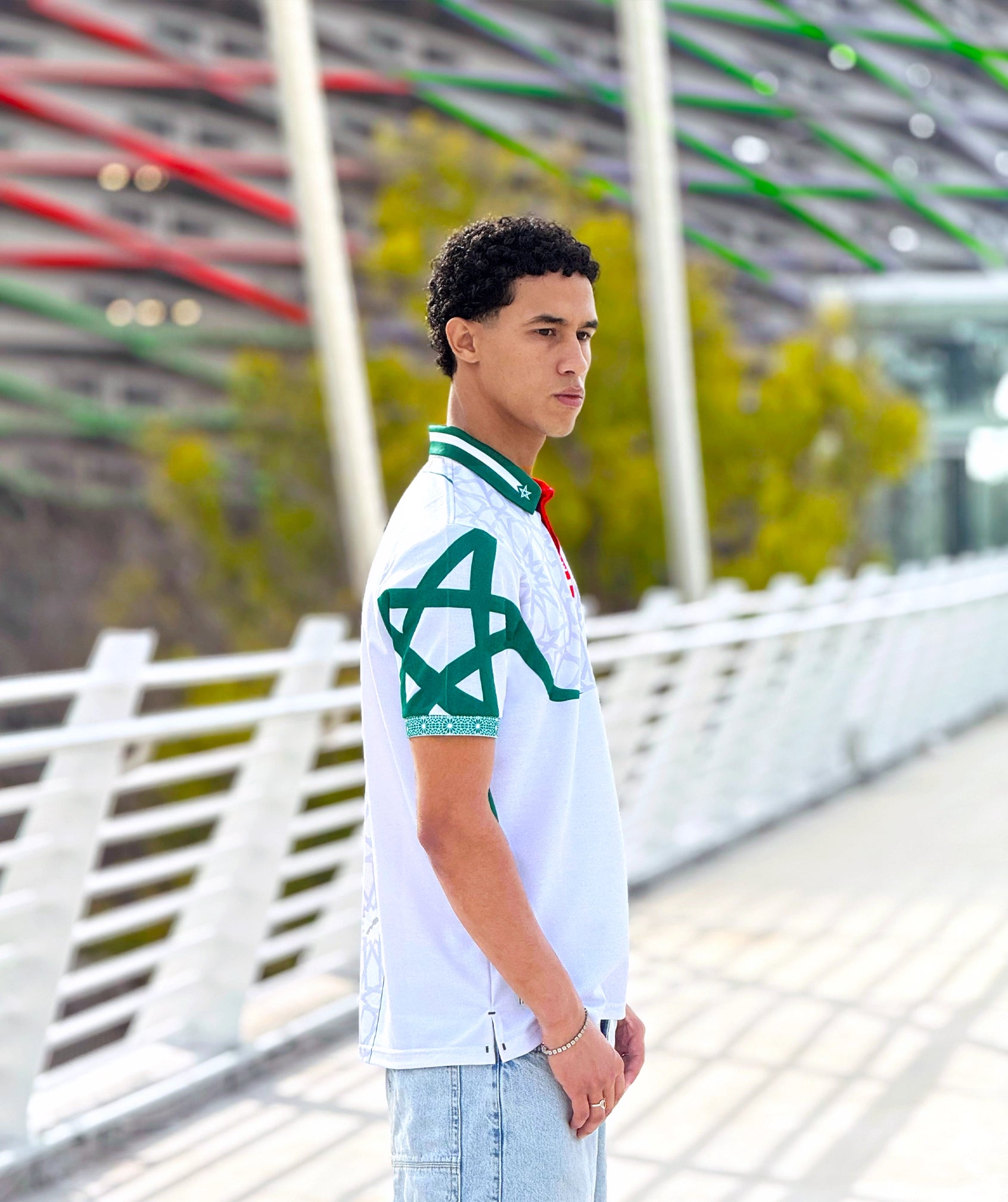Inspiré par les couleurs emblématiques et les symboles forts de notre pays, ce maillot est plus qu’un vêtement : c’est une déclaration d’amour au Maroc. Chaque détail, du rouge vibrant au vert profond, rappelle la force, la culture et l’unité de notre nation.